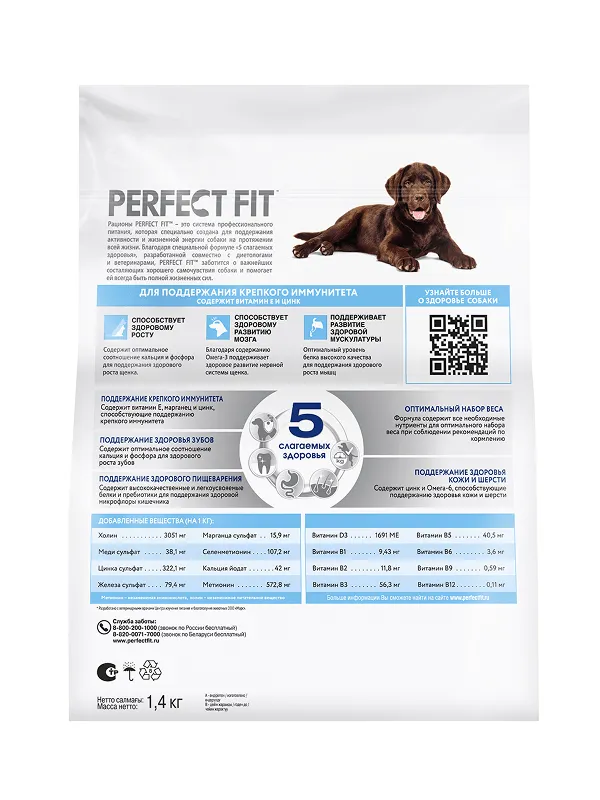 Рационы Perfect Fit™ - это система профессионального питания, которая специально создана для поддержания активности и жизненной энергии собаки на протяжении всей жизни. Благодаря специальной формуле «5 слагаемых здоровья», разработанной совместно с диетологами и ветеринарами, рационы Perfect Fit™ заботятся о важнейших составляющих хорошего самочувствия собаки и помогает ей всегда быть полной жизненных сил.