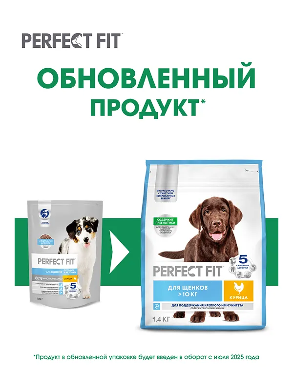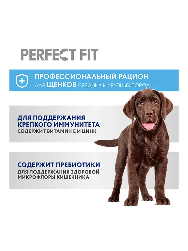 Профессиональный сухой рацион PERFECT FIT™ для щенков средних и крупных пород с курицей