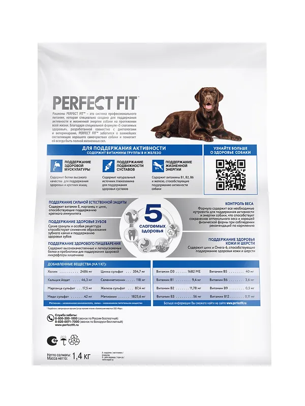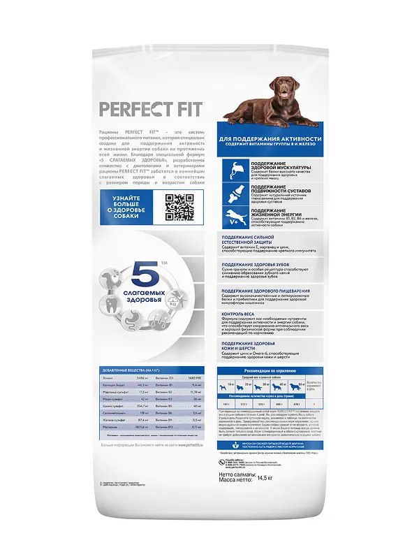 Рационы PERFECT FIT™ - это система профессионального питания, разработанная совместно с диетологами и ветеринарами и специально созданная для поддержания активности и жизненной энергии собаки на протяжении всей жизни. В основе рационов PERFECT FIT™ лежит уникальная формула «5 СЛАГАЕМЫХ ЗДОРОВЬЯ», которая заботится о важнейших слагаемых здоровья собаки.