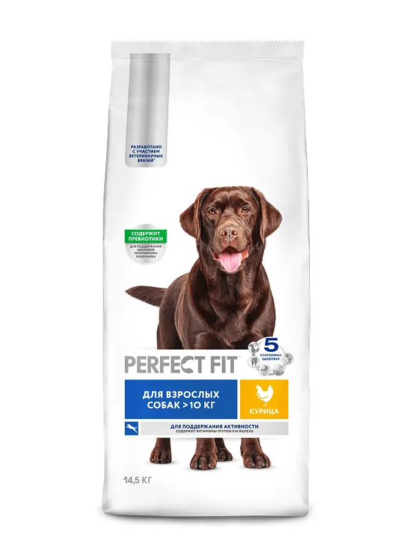 Преимущества сухого полнорационного корма PERFECT FIT™ с курицей для взрослых собак средних и крупных пород старше одного: